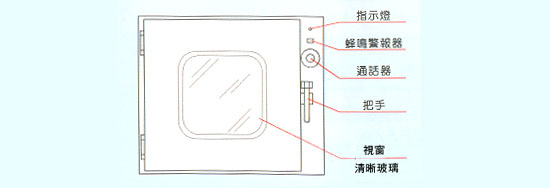 內外門連鎖、機械連鎖、通話器、蜂鳴指示器、指示燈。(以上規格可加裝殺菌燈)